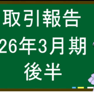 今回は、「取引報告、26年3月期・後半」について紹介します。 3月1...